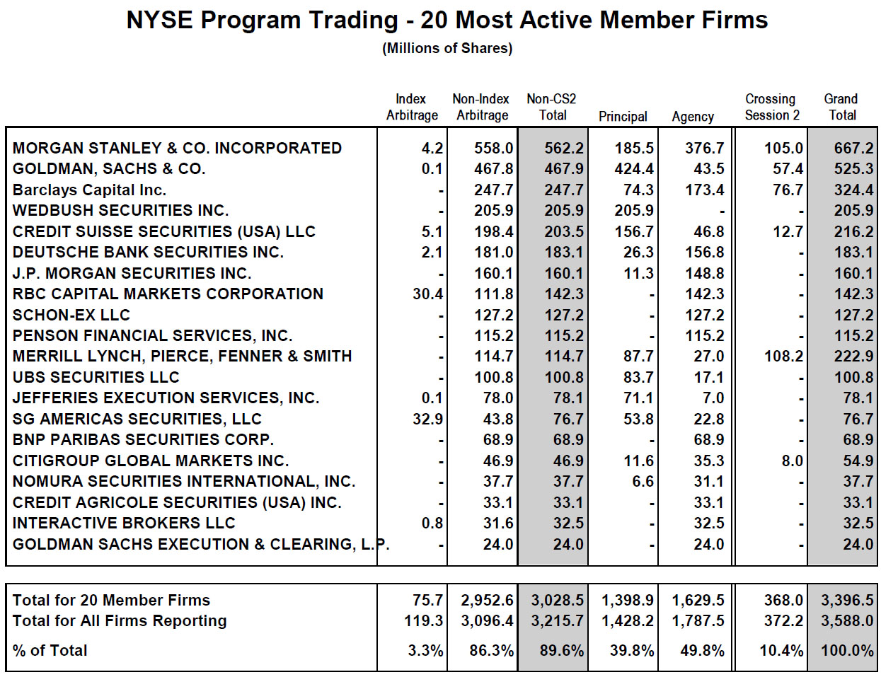 What is notable here is that of the 1.4 billion in principal shares, or shares traded for the firm�s own account, Goldman was the top trader by a margin of over 100% compared to the second biggest program trader.